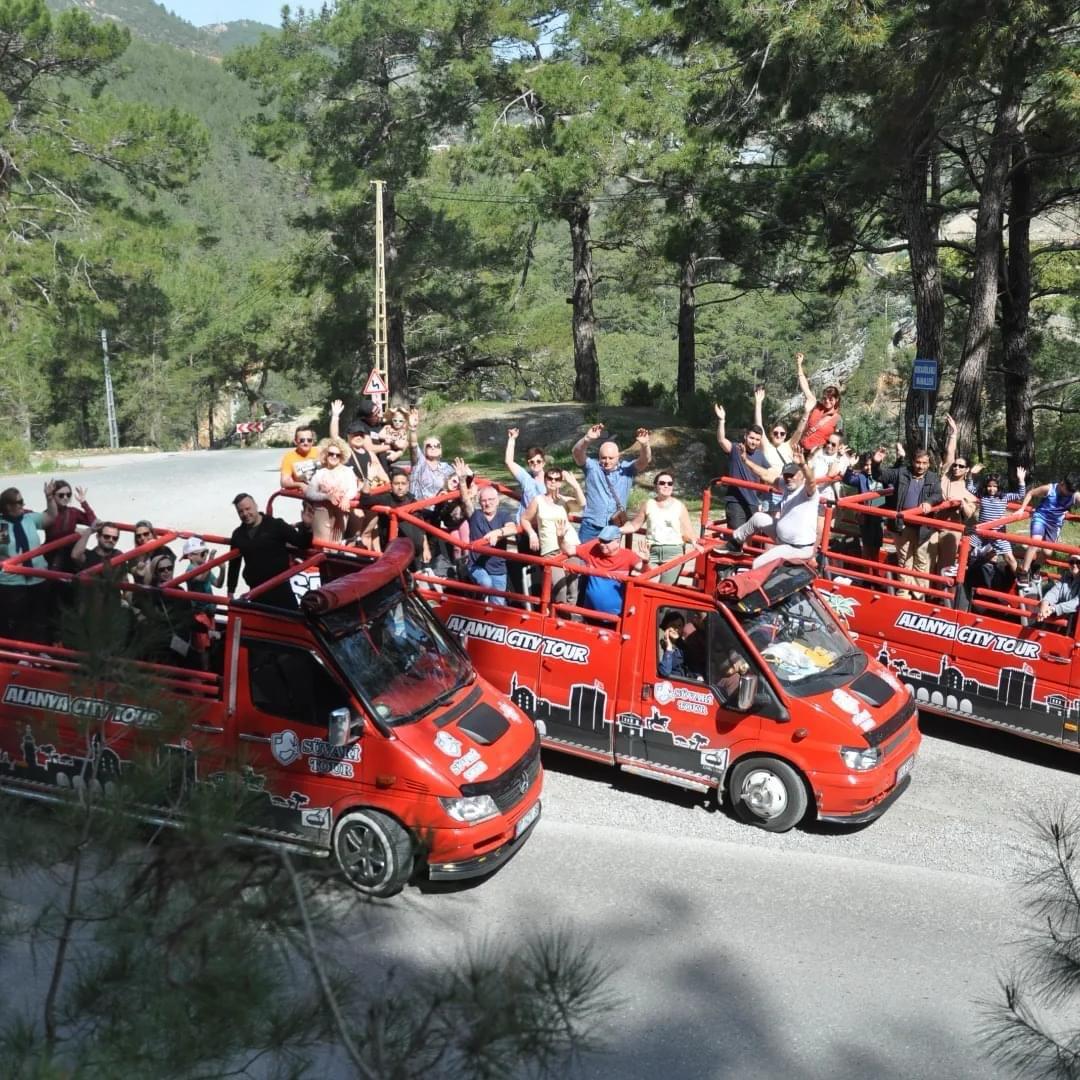 Experience the natural beauty and cultural highlights of Alanya on a full-day cabrio bus safari. Travel in comfort aboard a specially modified open-top minibus, accompanied by experienced drivers and a professional guide. This tour offers the perfect blend of adventure, relaxation, and scenic views.